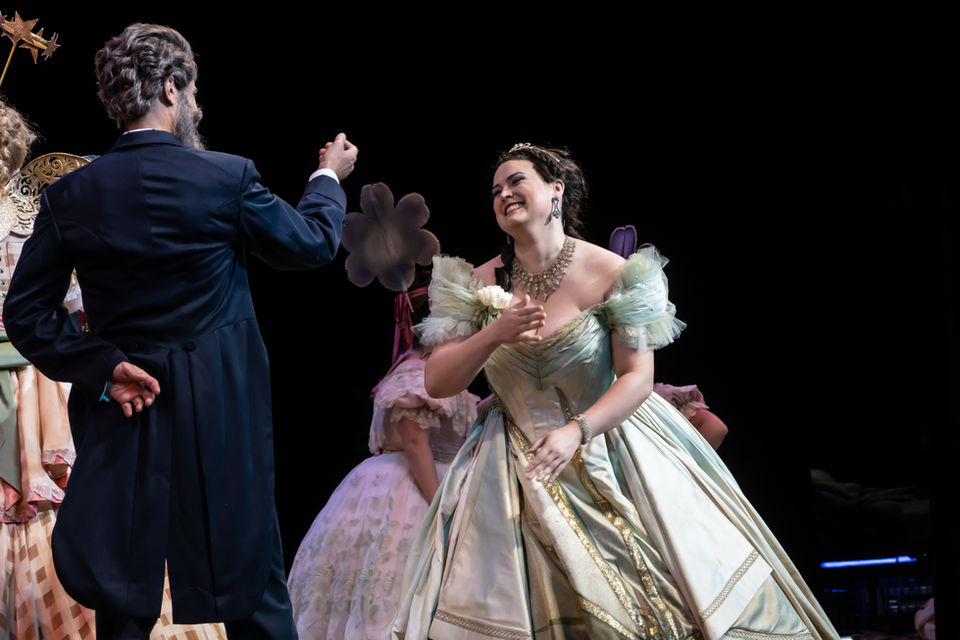 "Juliette’s tortured soliloquy before taking the potion, expressing her fears and doubts, then resolutely drinking it “à toi” – to Roméo – are Shakespeare and Gounod at their most profound; Dominguez was mesmerizing."