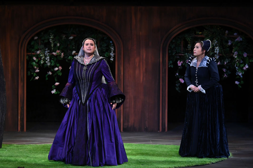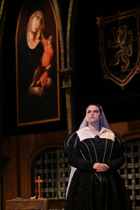 "[Dominguez] plays the titular character of Maria Stuarda, and her interpretation was a revelation: she is no noble victim crushed underfoot by an unjust and jealous rival. Dominguez styles her Maria as more of a proud, shrewd and manipulative player. Employing a whole arsenal of vocal colours and shadings, Dominguez‘s Maria plays upon the heartstrings of all the different characters she is paired with onstage. With Anna, her attendant (sweetly sung by soprano Kenix Tsang), she is playful and almost girlish, tossing out melismas with ease. With Talbot, she is every inch a noble Catholic, calling for justice from the heavens with a velvet timbre. Before a grieving crowd, she is all authority and forgiveness, floating pianissimi, a martyr unto death. Above all, with her suitor Leicester, Dominguez combines lightness of tone with a smoothly liquid line, demonstrating grace and fragility. With him, she is no queen, but an innocent princess requiring rescue." - INTERLUDE HK (Maria Stuarda, Musica Viva Hong Kong 2022)
